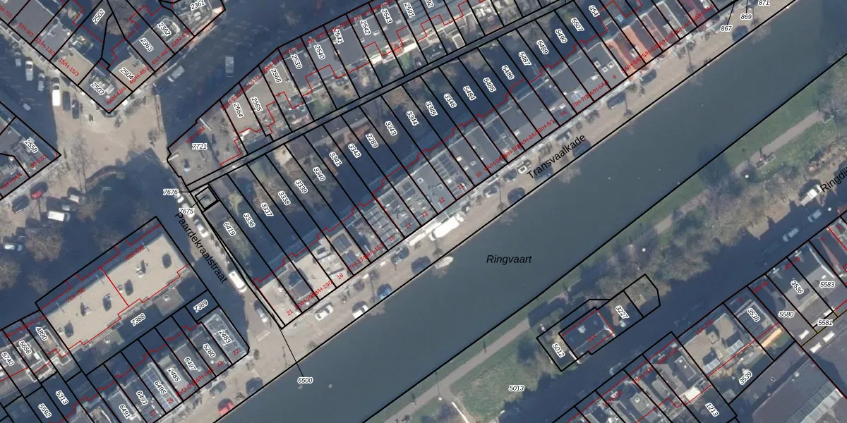 Transvaalkade 13 is gelegen op kadastraal perceel ASD19W2289. Deze kadastrale aanduiding is uniek en wordt gebruikt door het Kadaster om eigendomsrechten en andere zakelijke rechten vast te leggen. Het perceel maakt onderdeel uit van de kadastrale gemeente Amsterdam.