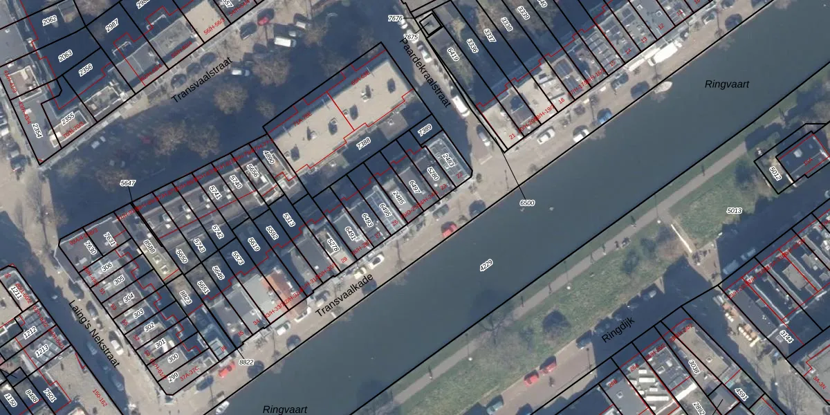 Transvaalkade 25-O is gelegen op kadastraal perceel ASD19W2485. Deze kadastrale aanduiding is uniek en wordt gebruikt door het Kadaster om eigendomsrechten en andere zakelijke rechten vast te leggen. Het perceel maakt onderdeel uit van de kadastrale gemeente Amsterdam.