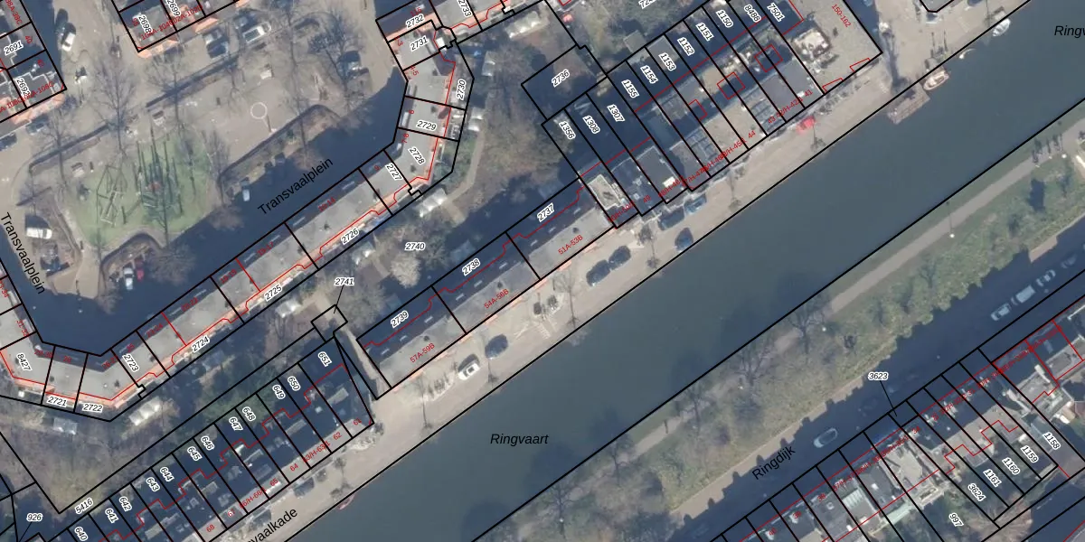 Transvaalkade 53-A is gelegen op kadastraal perceel ASD19W2737. Deze kadastrale aanduiding is uniek en wordt gebruikt door het Kadaster om eigendomsrechten en andere zakelijke rechten vast te leggen. Het perceel maakt onderdeel uit van de kadastrale gemeente Amsterdam.