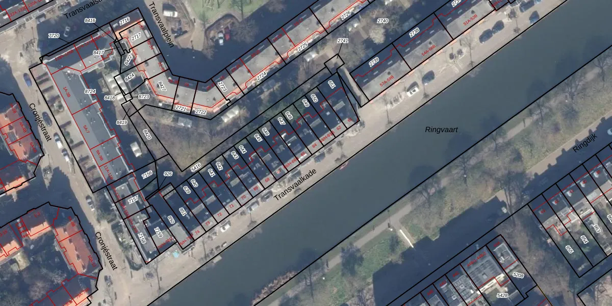 Het perceel waarop Transvaalkade 65-B staat heeft een oppervlakte van 81 m². Dit is een klein perceel. De perceeloppervlakte wordt geregistreerd door het Kadaster. Gedetailleerde informatie over de maten van dit perceel kunt u vinden in het rapport Kadastrale kaart met maatvoering van Transvaalkade 65-B.