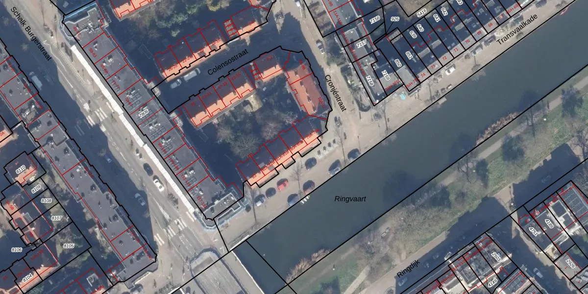 Het perceel waarop Transvaalkade 80-B staat heeft een oppervlakte van 4397 m². Dit is een zeer groot perceel. De perceeloppervlakte wordt geregistreerd door het Kadaster. Gedetailleerde informatie over de maten van dit perceel kunt u vinden in het rapport Kadastrale kaart met maatvoering van Transvaalkade 80-B.