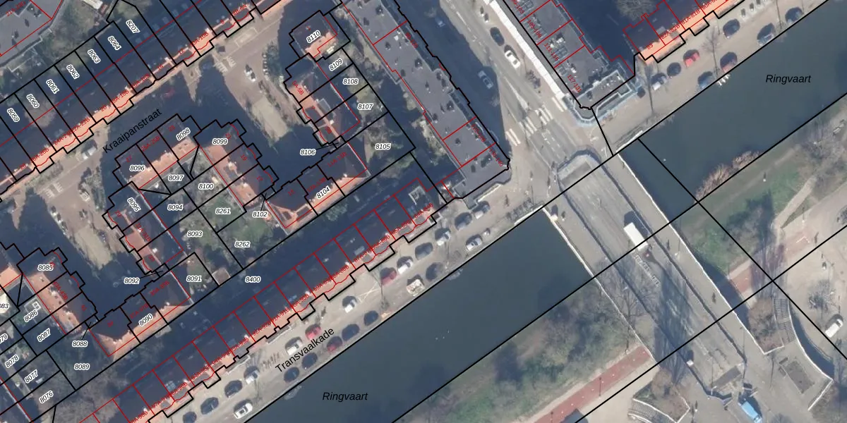 Transvaalkade 84-A is gelegen op kadastraal perceel ASD19W8400. Deze kadastrale aanduiding is uniek en wordt gebruikt door het Kadaster om eigendomsrechten en andere zakelijke rechten vast te leggen. Het perceel maakt onderdeel uit van de kadastrale gemeente Amsterdam.