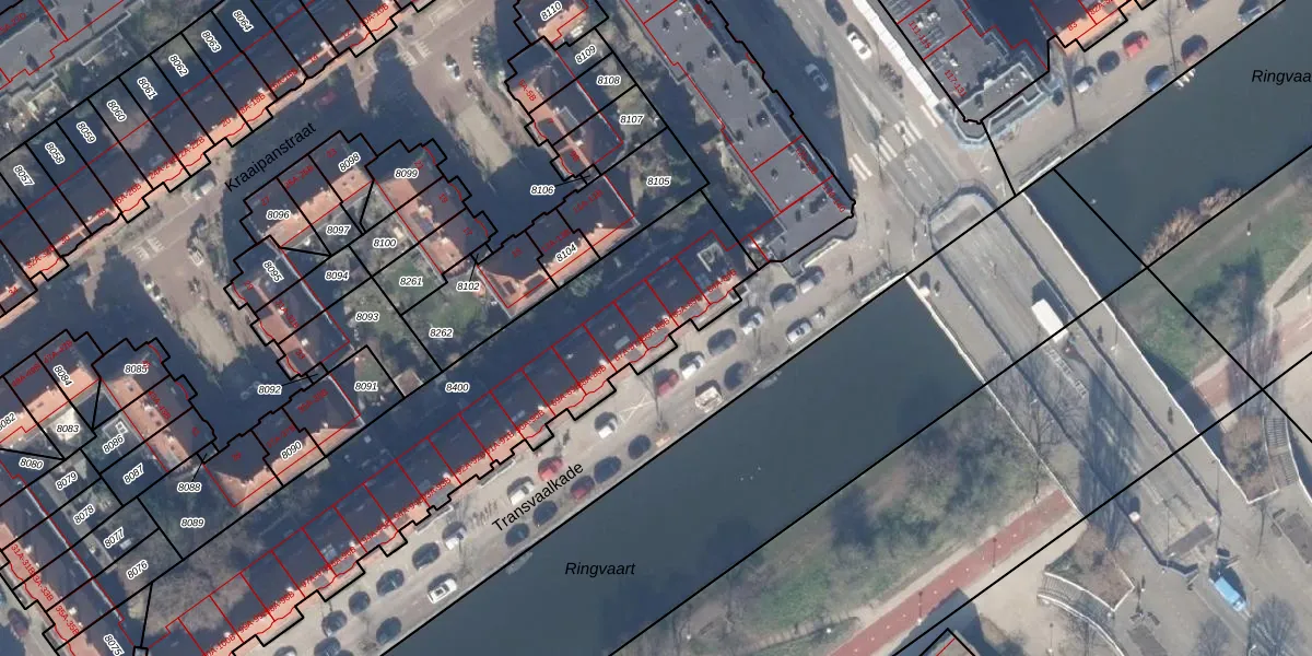 Transvaalkade 86-A is gelegen op kadastraal perceel ASD19W8400. Deze kadastrale aanduiding is uniek en wordt gebruikt door het Kadaster om eigendomsrechten en andere zakelijke rechten vast te leggen. Het perceel maakt onderdeel uit van de kadastrale gemeente Amsterdam.