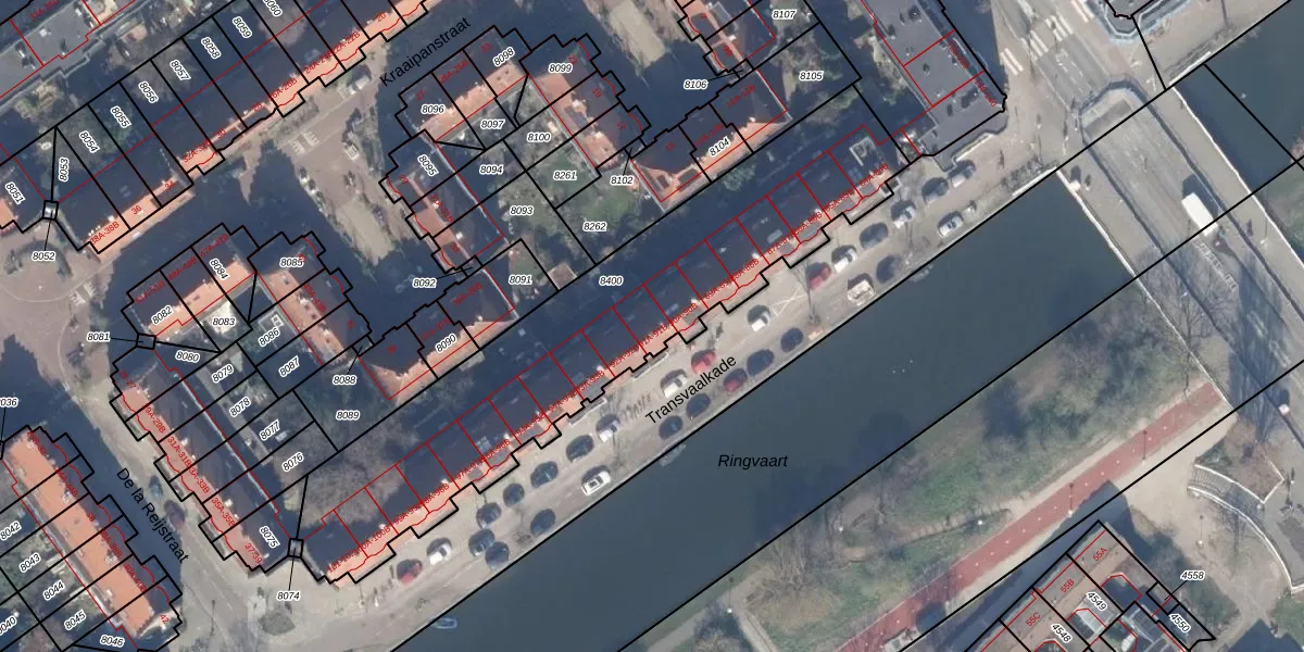 Transvaalkade 91-A is gelegen op kadastraal perceel ASD19W8400. Deze kadastrale aanduiding is uniek en wordt gebruikt door het Kadaster om eigendomsrechten en andere zakelijke rechten vast te leggen. Het perceel maakt onderdeel uit van de kadastrale gemeente Amsterdam.