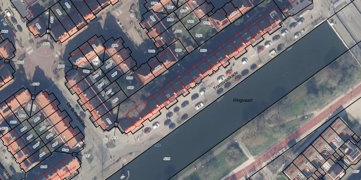 Transvaalkade 95-B is gelegen op kadastraal perceel ASD19W8400. Deze kadastrale aanduiding is uniek en wordt gebruikt door het Kadaster om eigendomsrechten en andere zakelijke rechten vast te leggen. Het perceel maakt onderdeel uit van de kadastrale gemeente Amsterdam.