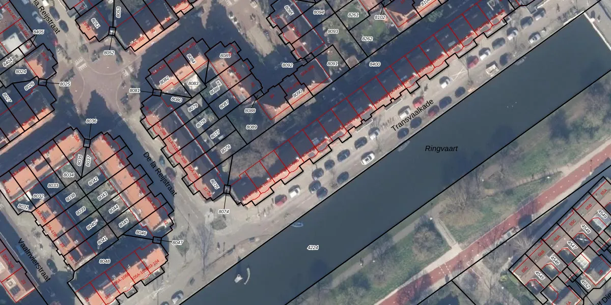 Transvaalkade 97-B is gelegen op kadastraal perceel ASD19W8400. Deze kadastrale aanduiding is uniek en wordt gebruikt door het Kadaster om eigendomsrechten en andere zakelijke rechten vast te leggen. Het perceel maakt onderdeel uit van de kadastrale gemeente Amsterdam.