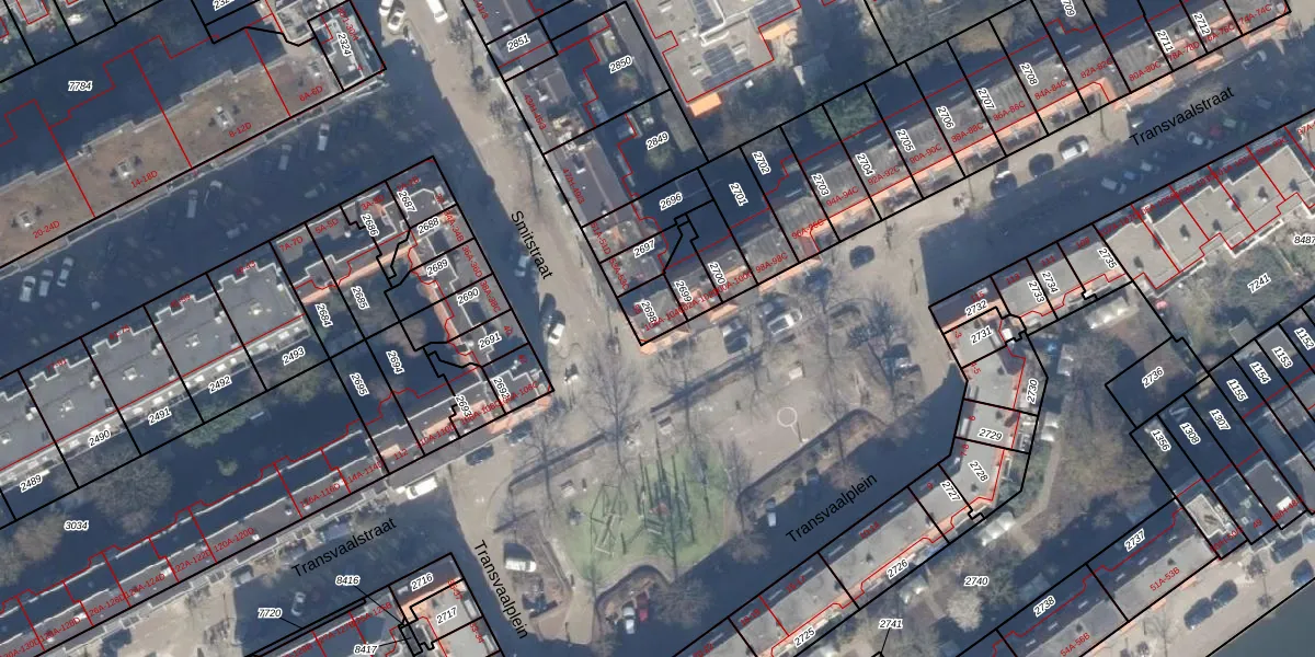 Het perceel waarop Transvaalstraat 104-B staat heeft een oppervlakte van 63 m². Dit is een klein perceel. De perceeloppervlakte wordt geregistreerd door het Kadaster. Gedetailleerde informatie over de maten van dit perceel kunt u vinden in het rapport Kadastrale kaart met maatvoering van Transvaalstraat 104-B.