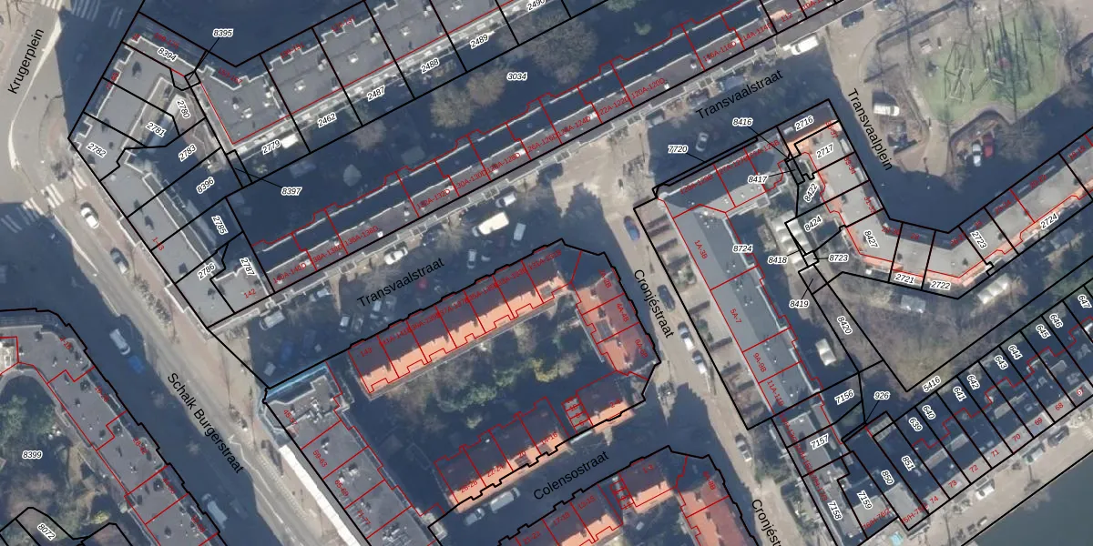 Het perceel waarop Transvaalstraat 131-A staat heeft een oppervlakte van 4397 m². Dit is een zeer groot perceel. De perceeloppervlakte wordt geregistreerd door het Kadaster. Gedetailleerde informatie over de maten van dit perceel kunt u vinden in het rapport Kadastrale kaart met maatvoering van Transvaalstraat 131-A.