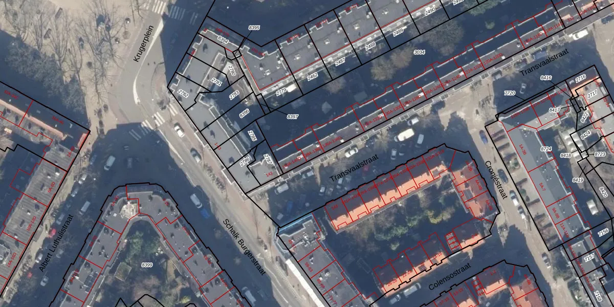 Het perceel waarop Transvaalstraat 138-C staat heeft een oppervlakte van 2063 m². Dit is een zeer groot perceel. De perceeloppervlakte wordt geregistreerd door het Kadaster. Gedetailleerde informatie over de maten van dit perceel kunt u vinden in het rapport Kadastrale kaart met maatvoering van Transvaalstraat 138-C.