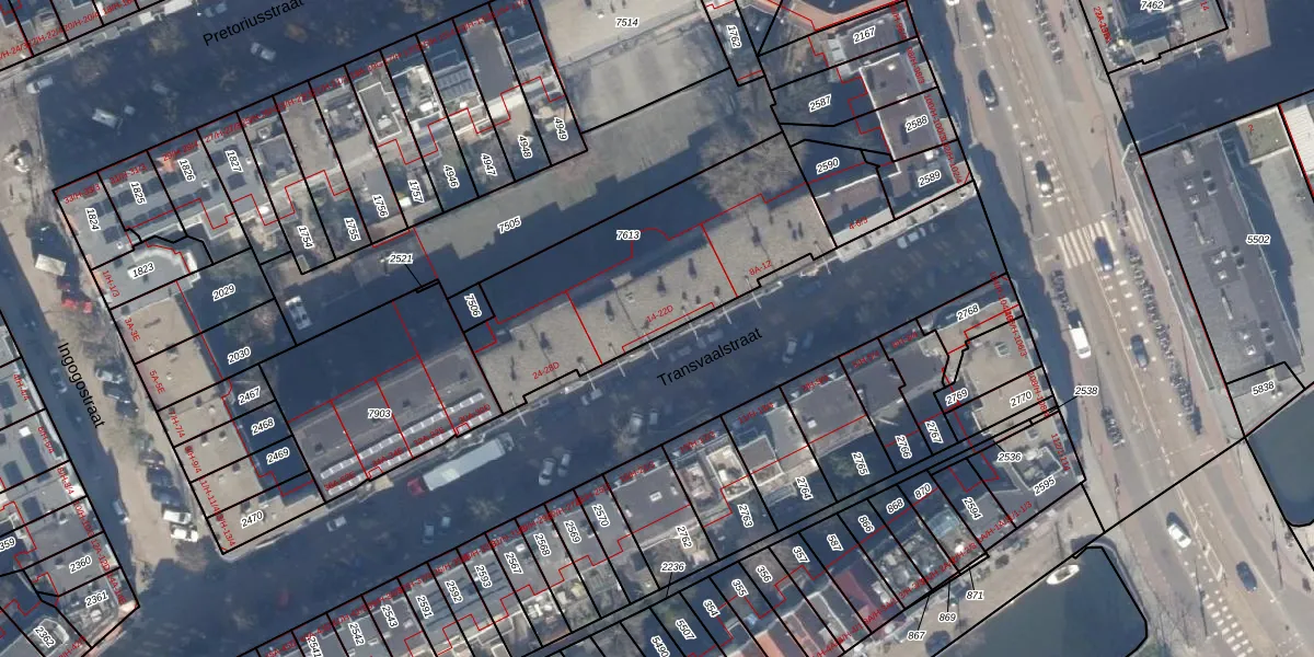 Het perceel waarop Transvaalstraat 20-A staat heeft een oppervlakte van 1079 m². Dit is een zeer groot perceel. De perceeloppervlakte wordt geregistreerd door het Kadaster. Gedetailleerde informatie over de maten van dit perceel kunt u vinden in het rapport Kadastrale kaart met maatvoering van Transvaalstraat 20-A.