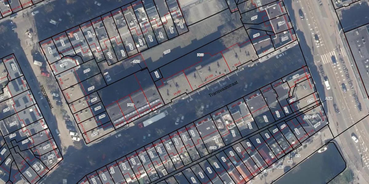Het perceel waarop Transvaalstraat 24 staat heeft een oppervlakte van 1079 m². Dit is een zeer groot perceel. De perceeloppervlakte wordt geregistreerd door het Kadaster. Gedetailleerde informatie over de maten van dit perceel kunt u vinden in het rapport Kadastrale kaart met maatvoering van Transvaalstraat 24.