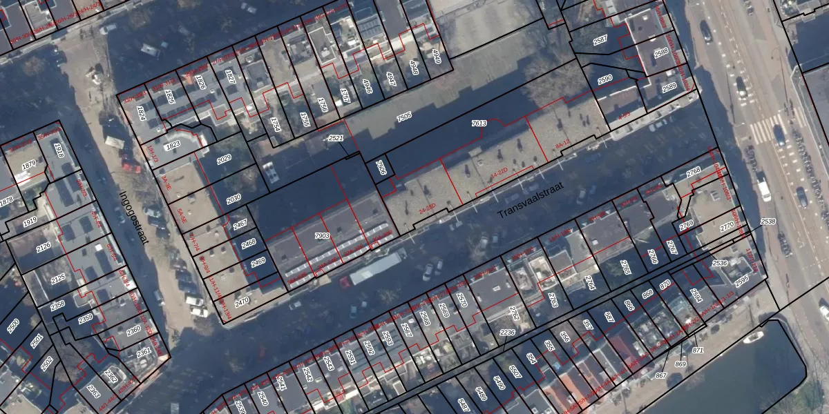 Het perceel waarop Transvaalstraat 28-A staat heeft een oppervlakte van 1079 m². Dit is een zeer groot perceel. De perceeloppervlakte wordt geregistreerd door het Kadaster. Gedetailleerde informatie over de maten van dit perceel kunt u vinden in het rapport Kadastrale kaart met maatvoering van Transvaalstraat 28-A.