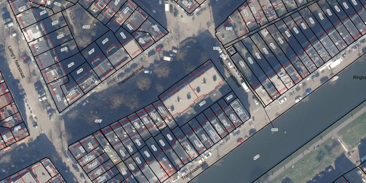 Het perceel waarop Transvaalstraat 71-E staat heeft een oppervlakte van 746 m². Dit is een groot perceel. De perceeloppervlakte wordt geregistreerd door het Kadaster. Gedetailleerde informatie over de maten van dit perceel kunt u vinden in het rapport Kadastrale kaart met maatvoering van Transvaalstraat 71-E.