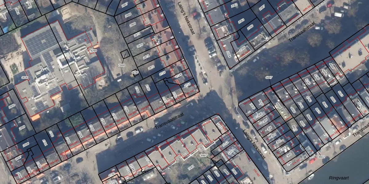 Het perceel waarop Transvaalstraat 74-B staat heeft een oppervlakte van 65 m². Dit is een klein perceel. De perceeloppervlakte wordt geregistreerd door het Kadaster. Gedetailleerde informatie over de maten van dit perceel kunt u vinden in het rapport Kadastrale kaart met maatvoering van Transvaalstraat 74-B.