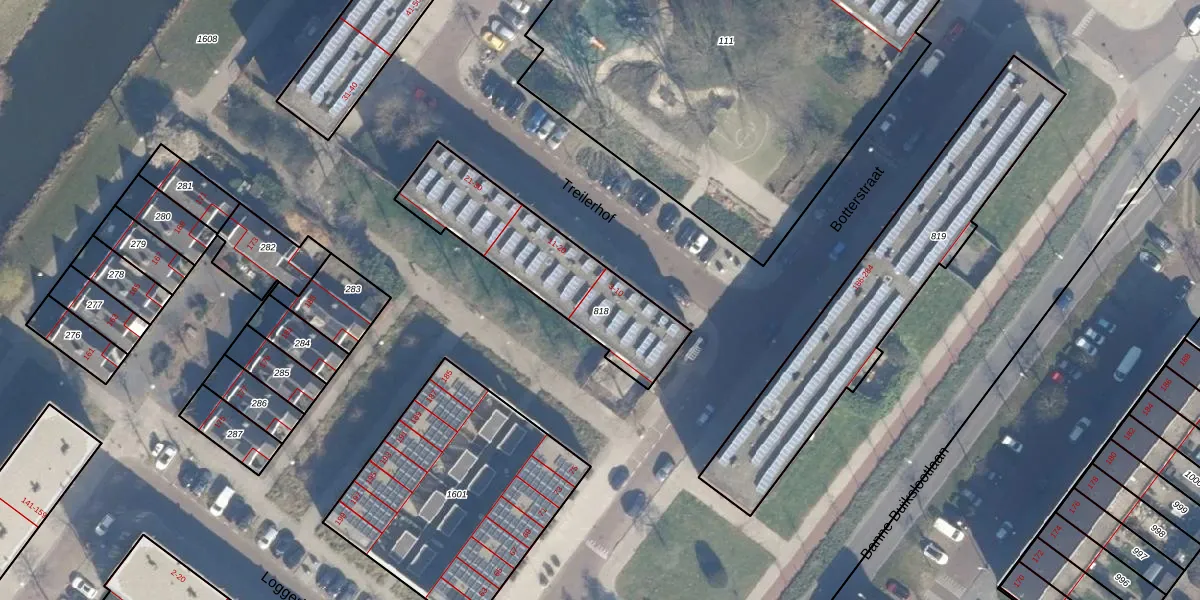 Het perceel waarop Treilerhof 10 staat heeft een oppervlakte van 595 m². Dit is een groot perceel. De perceeloppervlakte wordt geregistreerd door het Kadaster. Gedetailleerde informatie over de maten van dit perceel kunt u vinden in het rapport Kadastrale kaart met maatvoering van Treilerhof 10.