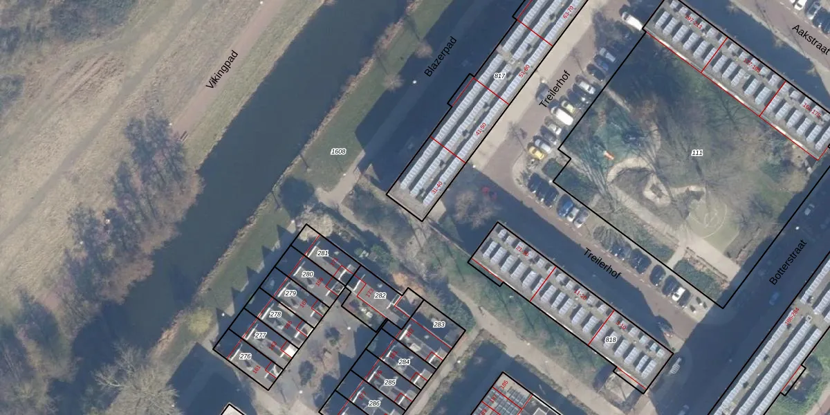 Het perceel waarop Treilerhof 31 staat heeft een oppervlakte van 973 m². Dit is een groot perceel. De perceeloppervlakte wordt geregistreerd door het Kadaster. Gedetailleerde informatie over de maten van dit perceel kunt u vinden in het rapport Kadastrale kaart met maatvoering van Treilerhof 31.