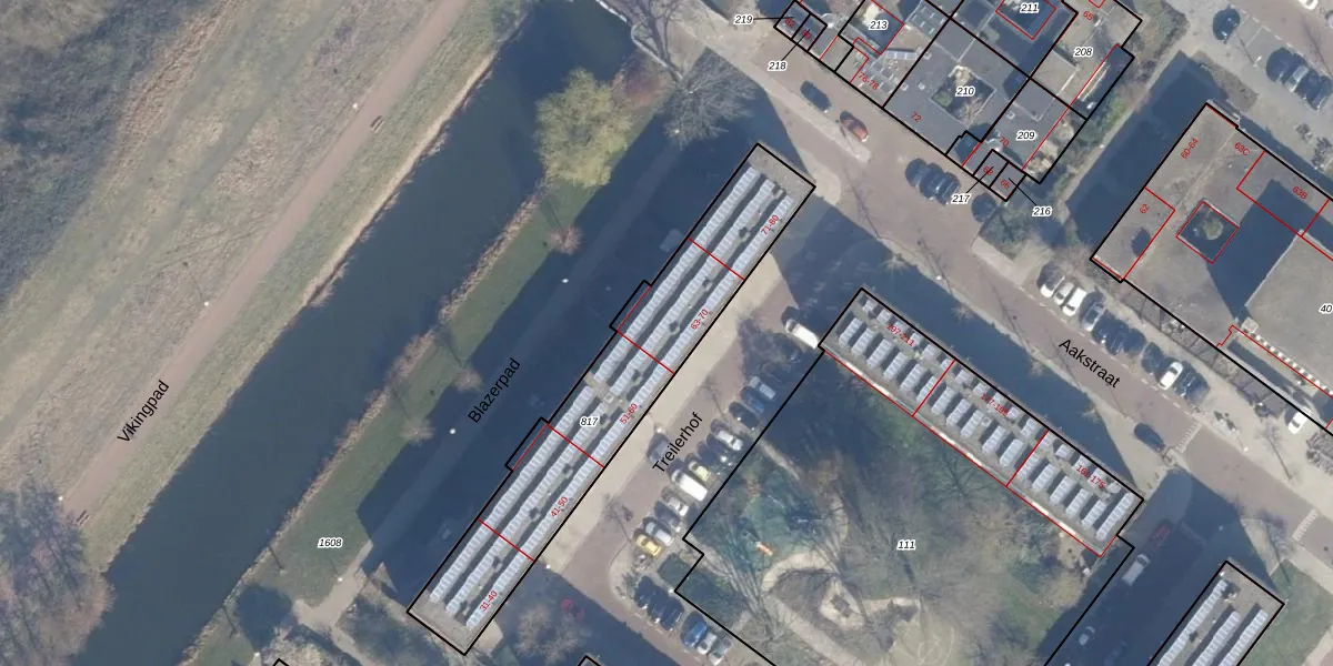 Het perceel waarop Treilerhof 63 staat heeft een oppervlakte van 973 m². Dit is een groot perceel. De perceeloppervlakte wordt geregistreerd door het Kadaster. Gedetailleerde informatie over de maten van dit perceel kunt u vinden in het rapport Kadastrale kaart met maatvoering van Treilerhof 63.
