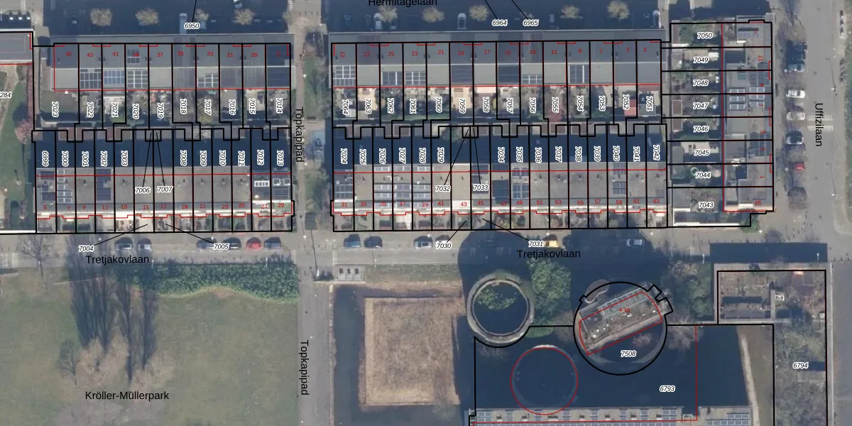 Het perceel waarop Tretjakovlaan 39 staat heeft een oppervlakte van 108 m². Dit is een middelgroot perceel. De perceeloppervlakte wordt geregistreerd door het Kadaster. Gedetailleerde informatie over de maten van dit perceel kunt u vinden in het rapport Kadastrale kaart met maatvoering van Tretjakovlaan 39.