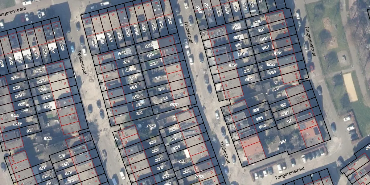 Gebruik de zoekbalk of klik op een perceel voor informatie over de adressen binnen dit perceel.