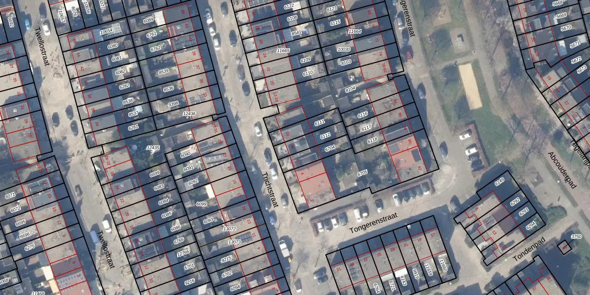 Gebruik de zoekbalk of klik op een perceel voor informatie over de adressen binnen dit perceel.