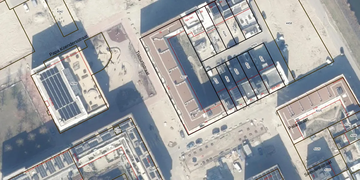 Trimurtistraat 53 is gelegen op kadastraal perceel ASD41AU4227. Deze kadastrale aanduiding is uniek en wordt gebruikt door het Kadaster om eigendomsrechten en andere zakelijke rechten vast te leggen. Het perceel maakt onderdeel uit van de kadastrale gemeente Amsterdam.
