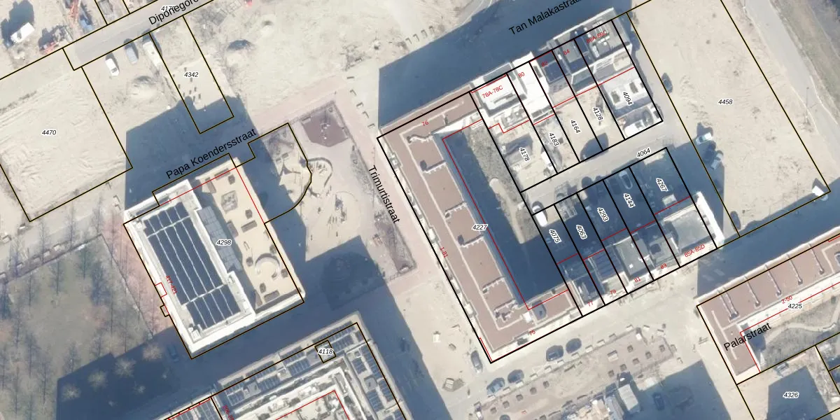 Het perceel waarop Trimurtistraat 7 staat heeft een oppervlakte van 1470 m². Dit is een zeer groot perceel. De perceeloppervlakte wordt geregistreerd door het Kadaster. Gedetailleerde informatie over de maten van dit perceel kunt u vinden in het rapport Kadastrale kaart met maatvoering van Trimurtistraat 7.