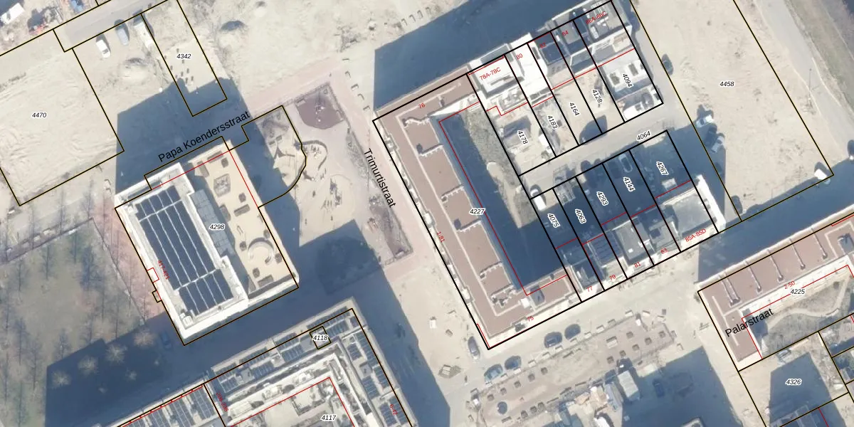 Trimurtistraat 9 is gelegen op kadastraal perceel ASD41AU4227. Deze kadastrale aanduiding is uniek en wordt gebruikt door het Kadaster om eigendomsrechten en andere zakelijke rechten vast te leggen. Het perceel maakt onderdeel uit van de kadastrale gemeente Amsterdam.