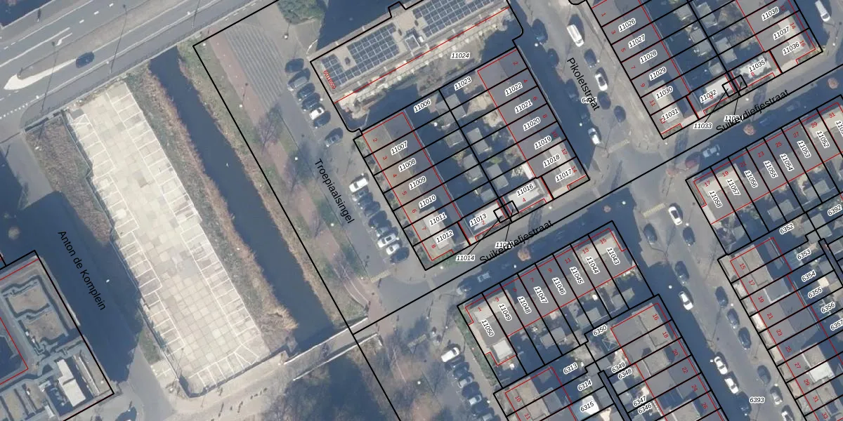 Gebruik de zoekbalk of klik op een perceel voor informatie over de adressen binnen dit perceel.