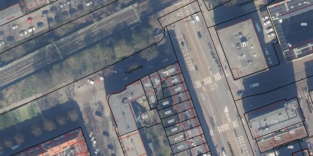 Tugelaweg 1-1 is gelegen op kadastraal perceel ASD19W8264. Deze kadastrale aanduiding is uniek en wordt gebruikt door het Kadaster om eigendomsrechten en andere zakelijke rechten vast te leggen. Het perceel maakt onderdeel uit van de kadastrale gemeente Amsterdam.