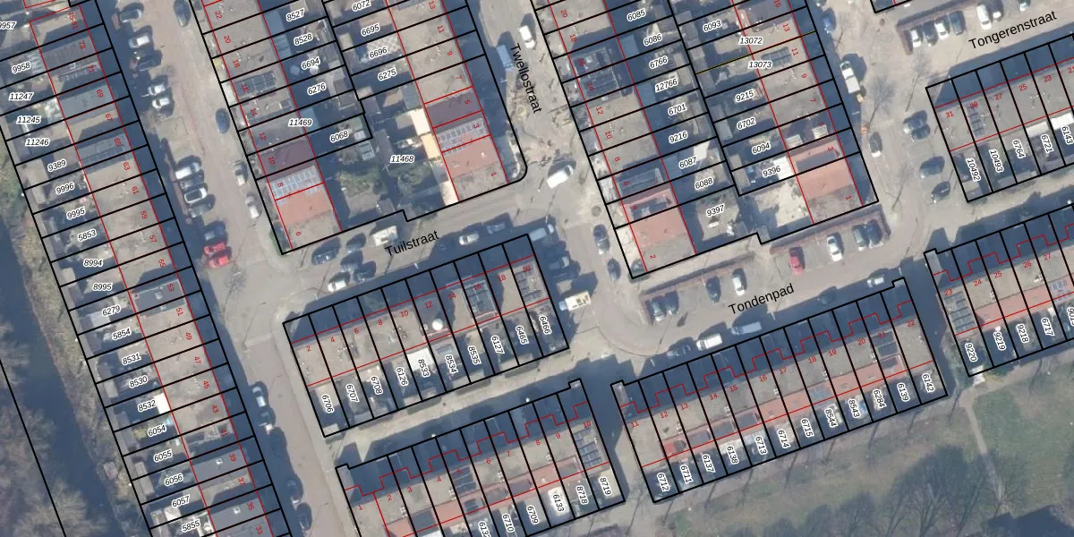 Gebruik de zoekbalk of klik op een perceel voor informatie over de adressen binnen dit perceel.