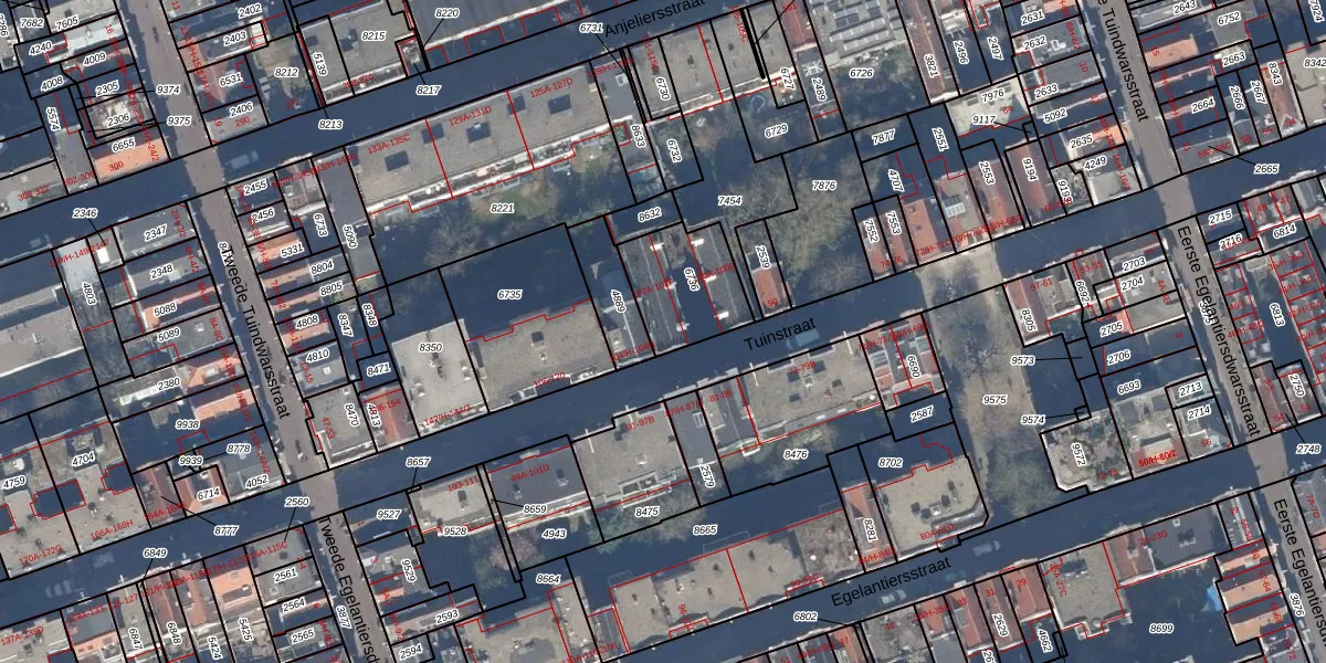 Het perceel waarop Tuinstraat 102-B staat heeft een oppervlakte van 279 m². Dit is een middelgroot perceel. De perceeloppervlakte wordt geregistreerd door het Kadaster. Gedetailleerde informatie over de maten van dit perceel kunt u vinden in het rapport Kadastrale kaart met maatvoering van Tuinstraat 102-B.