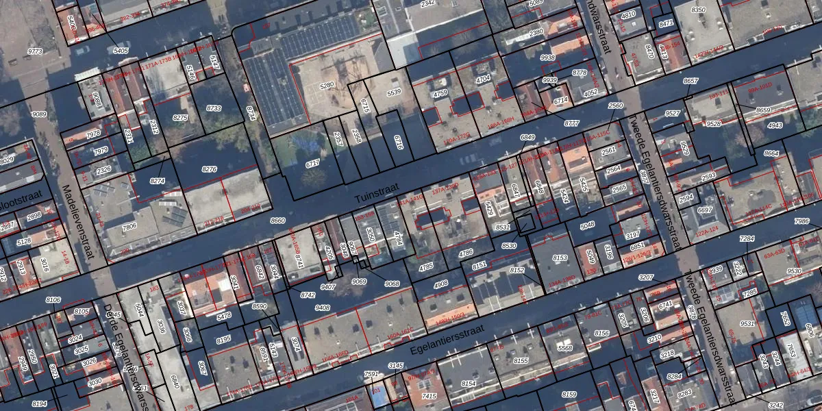 Tuinstraat 141-B is gelegen op kadastraal perceel ASD08L4785. Deze kadastrale aanduiding is uniek en wordt gebruikt door het Kadaster om eigendomsrechten en andere zakelijke rechten vast te leggen. Het perceel maakt onderdeel uit van de kadastrale gemeente Amsterdam.