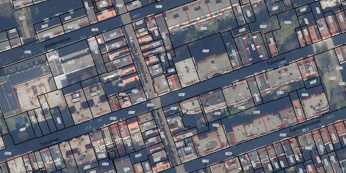 Het perceel waarop Tuinstraat 150 staat heeft een oppervlakte van 64 m². Dit is een klein perceel. De perceeloppervlakte wordt geregistreerd door het Kadaster. Gedetailleerde informatie over de maten van dit perceel kunt u vinden in het rapport Kadastrale kaart met maatvoering van Tuinstraat 150.