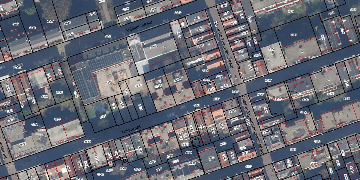 Het perceel waarop Tuinstraat 168-E staat heeft een oppervlakte van 263 m². Dit is een middelgroot perceel. De perceeloppervlakte wordt geregistreerd door het Kadaster. Gedetailleerde informatie over de maten van dit perceel kunt u vinden in het rapport Kadastrale kaart met maatvoering van Tuinstraat 168-E.