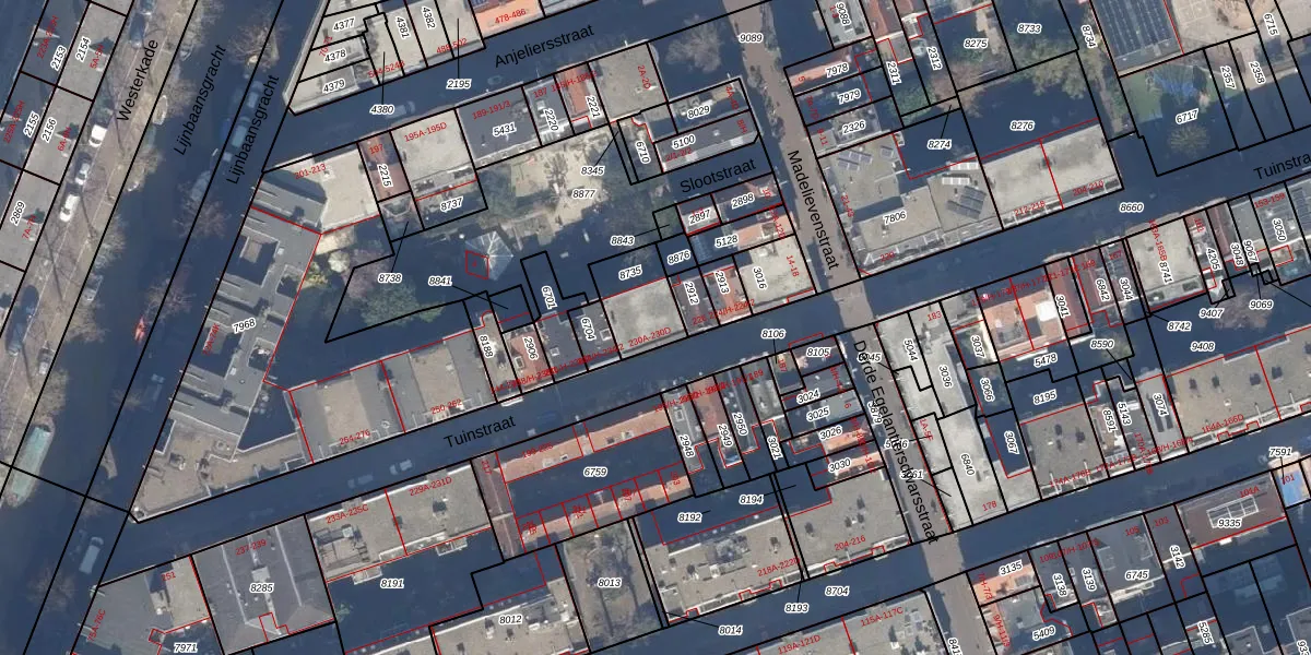 Het adres is gelegen op perceel 8735 in de sectie L en de kadastrale gemeente Amsterdam. De kadastrale aanduiding is aldus ASD08-L-8735. Het perceel is 166 m² groot. Dat is kleiner dan de gemiddelde perceeloppervlakte in Amsterdam, dat op 202,23 m² ligt. Het grootste perceel in de kadastrale gemeente is 3,3 ha. Het kleinste perceel heeft een oppervlakte van 0 m². Op het perceel liggen in totaal 4 adressen. In de Basisregistratie Kadaster (BRK) werden de grenzen van het perceel geregistreerd op 26-01-2007.