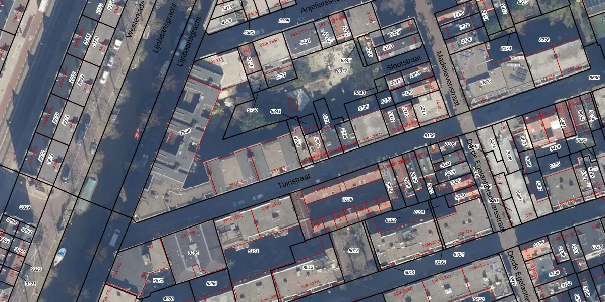 Het adres is gelegen op perceel 8188 in de sectie L en de kadastrale gemeente Amsterdam. De kadastrale aanduiding is aldus ASD08-L-8188. Het perceel is 68 m² groot. Dat is kleiner dan de gemiddelde perceeloppervlakte in Amsterdam, dat op 202,23 m² ligt. Het grootste perceel in de kadastrale gemeente is 3,3 ha. Het kleinste perceel heeft een oppervlakte van 0 m². Op het perceel zijn 3 adressen aanwezig. In de Basisregistratie Kadaster (BRK) werden de grenzen van het perceel geregistreerd op 26-01-2007.
