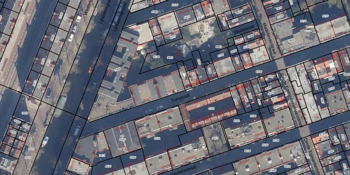 Het adres is gelegen op perceel 7968 in de sectie L en de kadastrale gemeente Amsterdam. De kadastrale aanduiding is aldus ASD08-L-7968. De oppervlakte van het perceel is 1544 m². Dat is groter dan gemiddeld in Amsterdam, waar de gemiddelde perceeloppervlakte op 202,23 m² ligt. Het grootste perceel in de kadastrale gemeente is 3,3 ha. Het kleinste perceel heeft een oppervlakte van 0 m². Op het perceel liggen in totaal 48 adressen. In de Basisregistratie Kadaster (BRK) werden de grenzen van het perceel geregistreerd op 31-01-2007.
