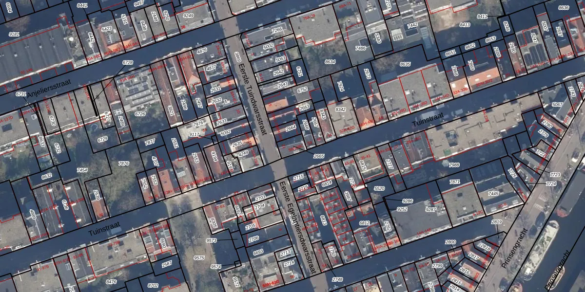 Tuinstraat 58-A is gelegen op kadastraal perceel ASD08L2665. Deze kadastrale aanduiding is uniek en wordt gebruikt door het Kadaster om eigendomsrechten en andere zakelijke rechten vast te leggen. Het perceel maakt onderdeel uit van de kadastrale gemeente Amsterdam.