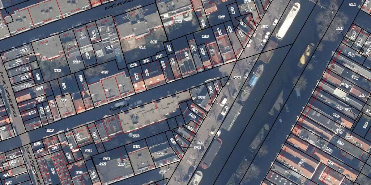 Het adres is gelegen op perceel 7988 in de sectie L en de kadastrale gemeente Amsterdam. De kadastrale aanduiding is aldus ASD08-L-7988. De oppervlakte van het perceel is 773 m². Dat is groter dan gemiddeld in Amsterdam, waar de gemiddelde perceeloppervlakte op 202,23 m² ligt. De grootste perceeloppervlakte in de kadastrale gemeente is 3,3 ha. De kleinste oppervlakte bedraagt 0 m². Er zijn 18 adressen aanwezig op het perceel. De huidige grenzen van het perceel zijn digitaal in de Basisregistratie Kadaster (BRK) geregistreerd op 24-01-2007.