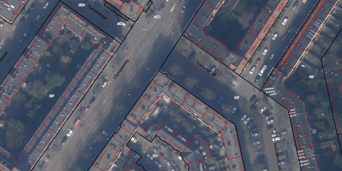 Het perceel waarop Turnerstraat 24-3 staat heeft een oppervlakte van 6395 m². Dit is een zeer groot perceel. De perceeloppervlakte wordt geregistreerd door het Kadaster. Gedetailleerde informatie over de maten van dit perceel kunt u vinden in het rapport Kadastrale kaart met maatvoering van Turnerstraat 24-3.