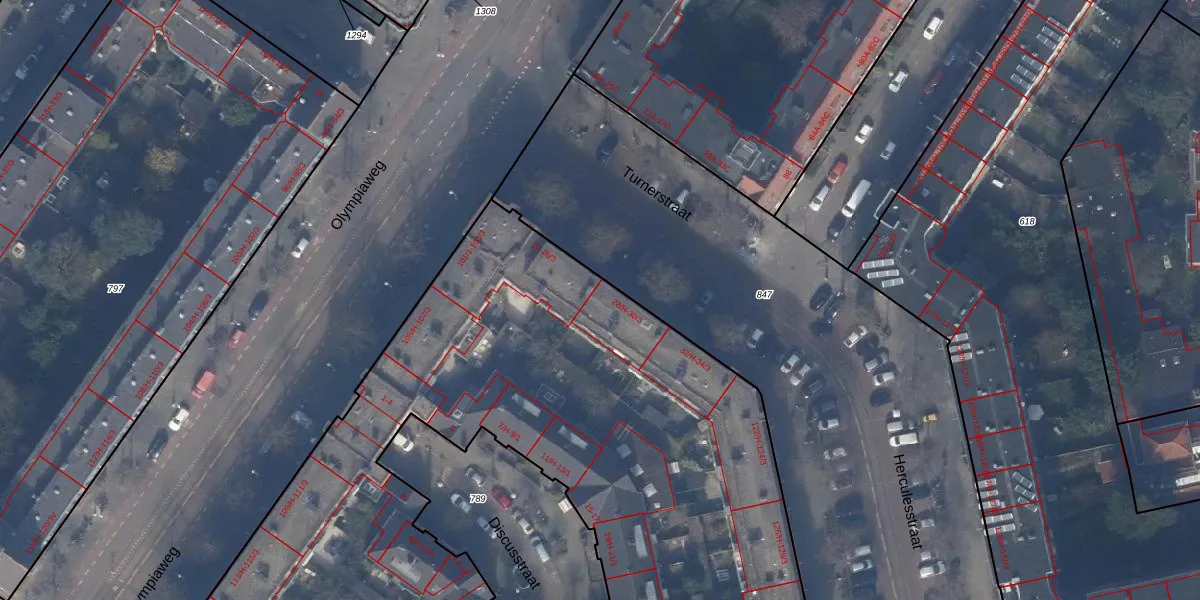 Het adres is gelegen op perceel 868 in de sectie AC en de kadastrale gemeente Amsterdam. De kadastrale aanduiding is aldus ASD24-AC-868. De oppervlakte van het perceel is 6395 m². Dat is groter dan gemiddeld in Amsterdam, waar de gemiddelde perceeloppervlakte op 1361,91 m² ligt. Het kleinste perceel in de kadastrale gemeente is 1 m² groot. De grootste perceeloppervlakte is 5,8 ha. Op het perceel zijn 202 adressen aanwezig. In de Basisregistratie Kadaster (BRK) werden de grenzen van het perceel geregistreerd op 30-11-2010.