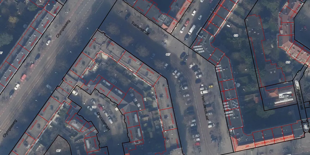 Turnerstraat 34-H is gelegen op kadastraal perceel ASD24AC868. Deze kadastrale aanduiding is uniek en wordt gebruikt door het Kadaster om eigendomsrechten en andere zakelijke rechten vast te leggen. Het perceel maakt onderdeel uit van de kadastrale gemeente Amsterdam.