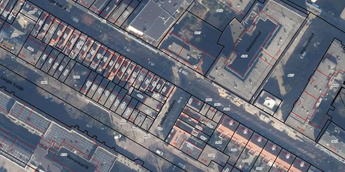 Tussen Kadijken 21 is gelegen op kadastraal perceel ASD11O170. Deze kadastrale aanduiding is uniek en wordt gebruikt door het Kadaster om eigendomsrechten en andere zakelijke rechten vast te leggen. Het perceel maakt onderdeel uit van de kadastrale gemeente Amsterdam.