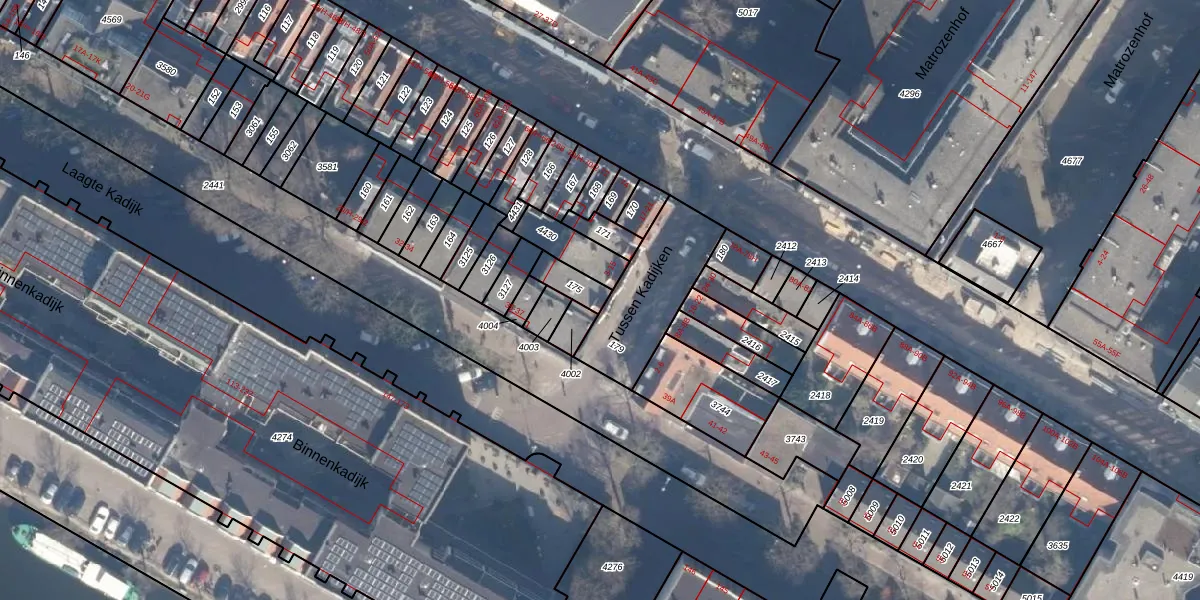 Tussen Kadijken 3 is gelegen op kadastraal perceel ASD11O175. Deze kadastrale aanduiding is uniek en wordt gebruikt door het Kadaster om eigendomsrechten en andere zakelijke rechten vast te leggen. Het perceel maakt onderdeel uit van de kadastrale gemeente Amsterdam.