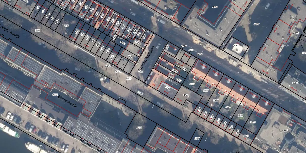 Tussen Kadijken 4 is gelegen op kadastraal perceel ASD11O3744. Deze kadastrale aanduiding is uniek en wordt gebruikt door het Kadaster om eigendomsrechten en andere zakelijke rechten vast te leggen. Het perceel maakt onderdeel uit van de kadastrale gemeente Amsterdam.