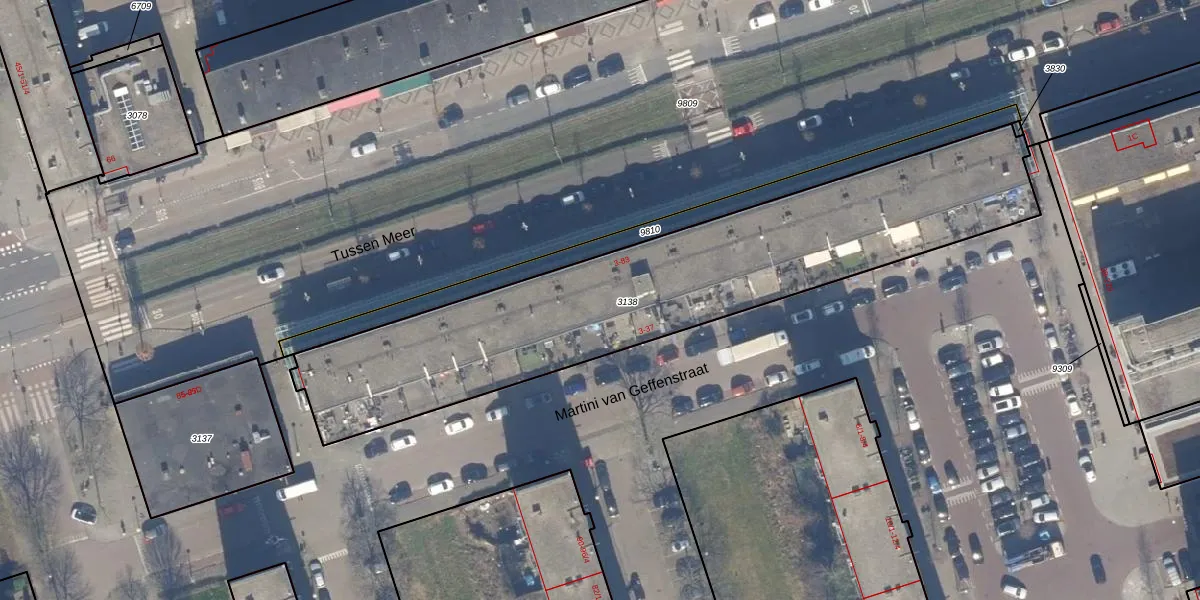 Het perceel waarop Tussen Meer 13 staat heeft een oppervlakte van 2021 m². Dit is een zeer groot perceel. De perceeloppervlakte wordt geregistreerd door het Kadaster. Gedetailleerde informatie over de maten van dit perceel kunt u vinden in het rapport Kadastrale kaart met maatvoering van Tussen Meer 13.