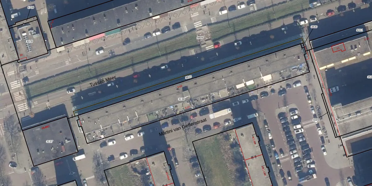 Het perceel waarop Tussen Meer 43 staat heeft een oppervlakte van 2021 m². Dit is een zeer groot perceel. De perceeloppervlakte wordt geregistreerd door het Kadaster. Gedetailleerde informatie over de maten van dit perceel kunt u vinden in het rapport Kadastrale kaart met maatvoering van Tussen Meer 43.