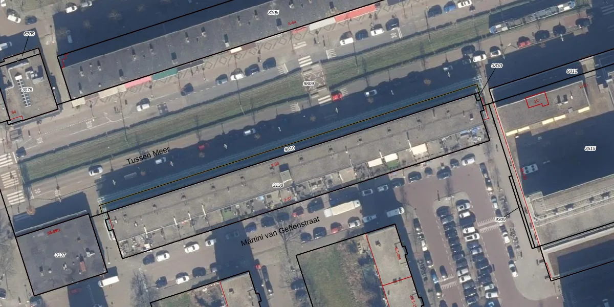 Het perceel waarop Tussen Meer 65 staat heeft een oppervlakte van 2021 m². Dit is een zeer groot perceel. De perceeloppervlakte wordt geregistreerd door het Kadaster. Gedetailleerde informatie over de maten van dit perceel kunt u vinden in het rapport Kadastrale kaart met maatvoering van Tussen Meer 65.