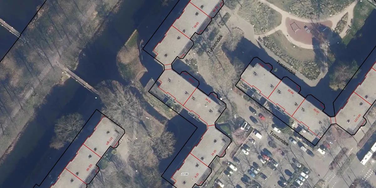 Tussendek 42 is gelegen op kadastraal perceel ASD36AQ2236. Deze kadastrale aanduiding is uniek en wordt gebruikt door het Kadaster om eigendomsrechten en andere zakelijke rechten vast te leggen. Het perceel maakt onderdeel uit van de kadastrale gemeente Amsterdam.