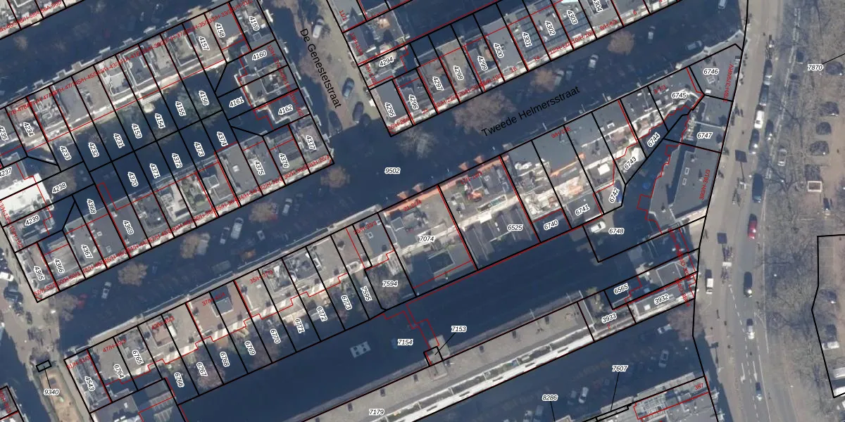 Het perceel waarop het adres ligt is ASD13-Q-7074. De afkorting 'ASD13' staat voor kadastrale gemeente Amsterdam. Het perceel is kleiner dan gemiddeld in Amsterdam. Het perceel is 357 m² groot, terwijl het gemiddelde ligt op 393,94 m². Het grootste perceel in de kadastrale gemeente is 6,2 ha. Het kleinste perceel heeft een oppervlakte van 1 m². Op het perceel zijn 9 adressen aanwezig. De huidige grenzen van het perceel zijn digitaal in de Basisregistratie Kadaster (BRK) geregistreerd op 03-11-2006.